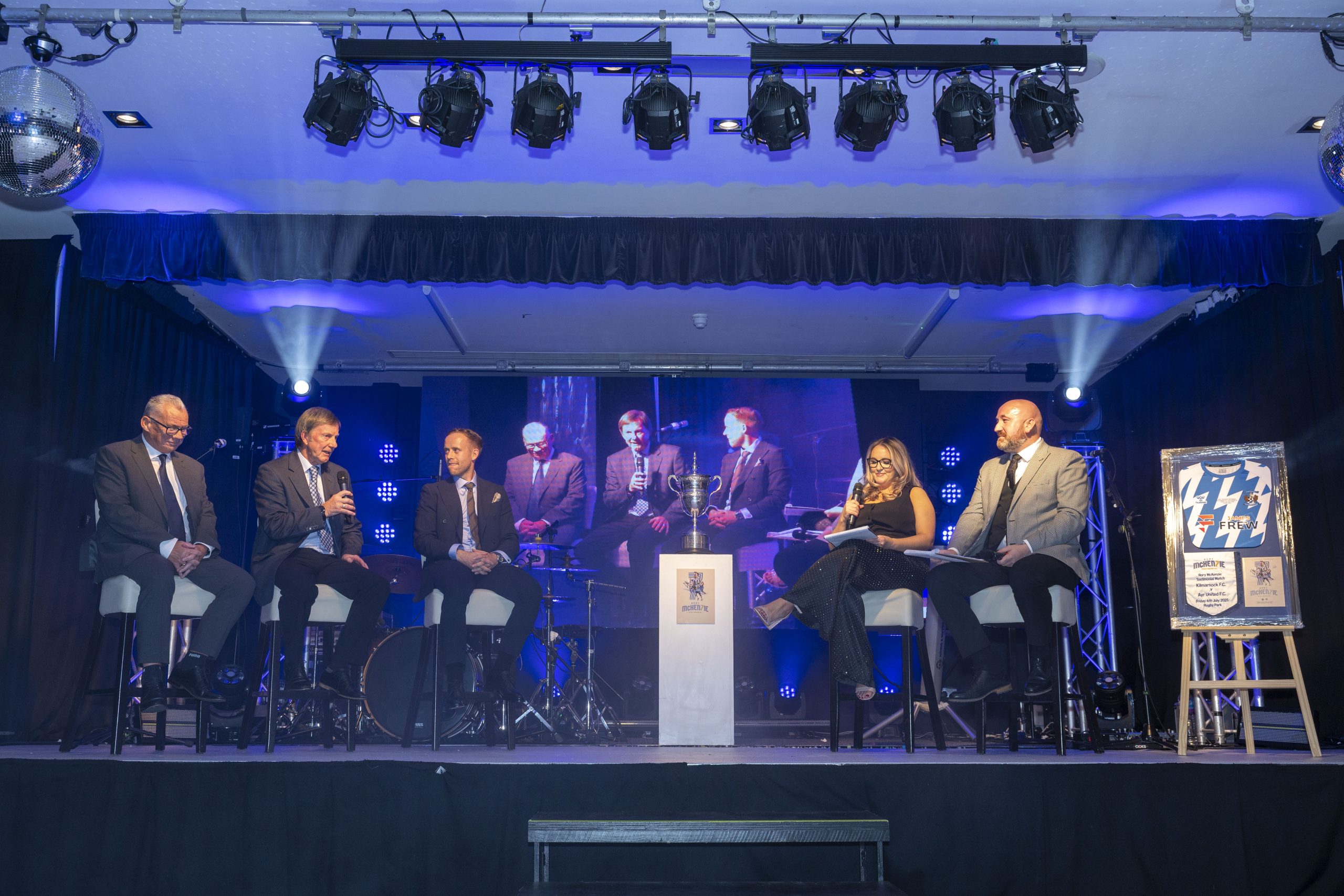The evening began with a warm introduction from Ali and Michael of Now Ayrshire Radio, who welcomed guests before inviting Rory to the stage for an opening interview reflecting on his career, proudest moments, and connection to the club.