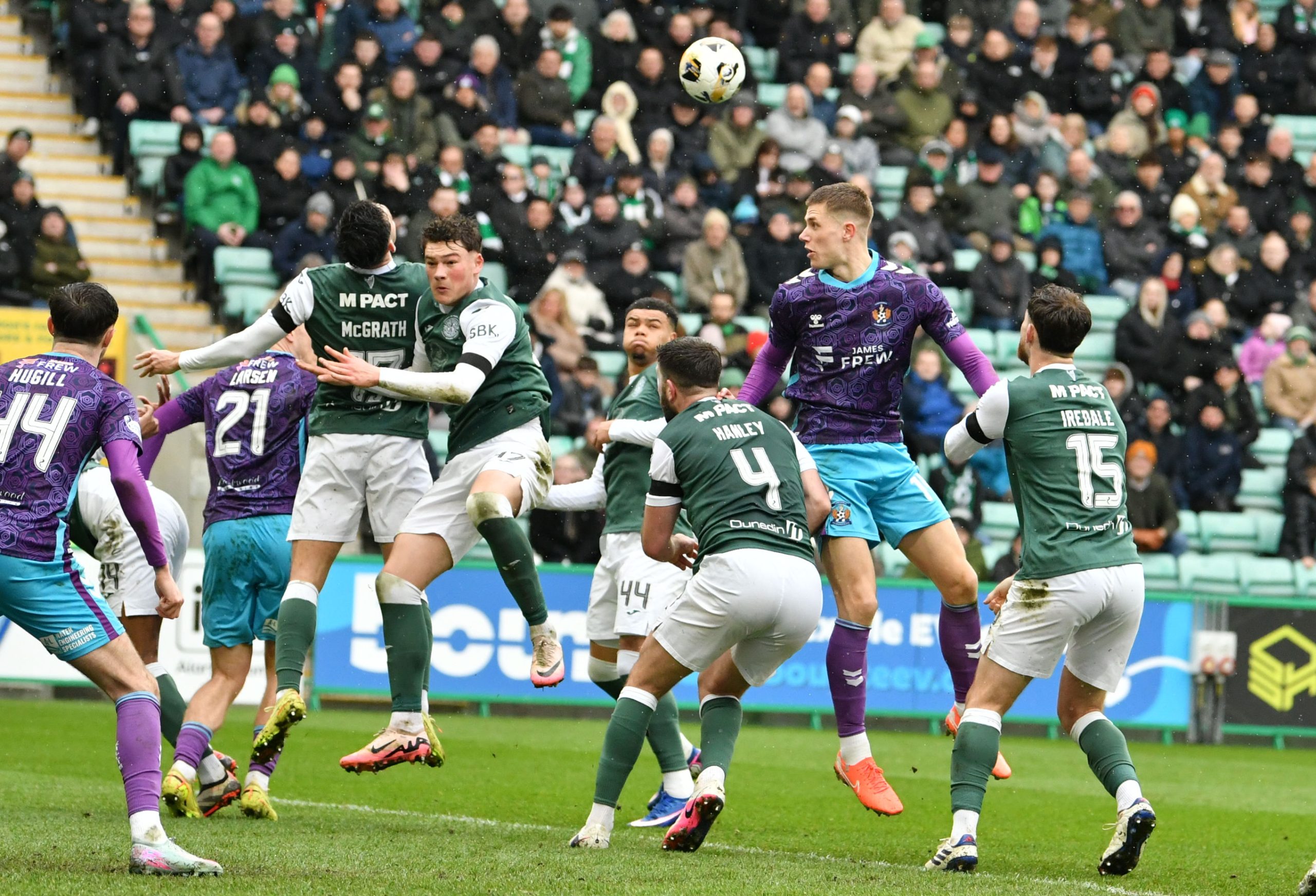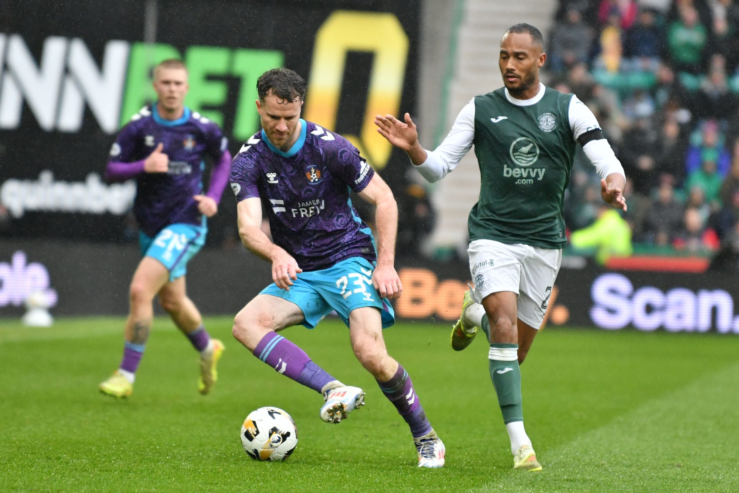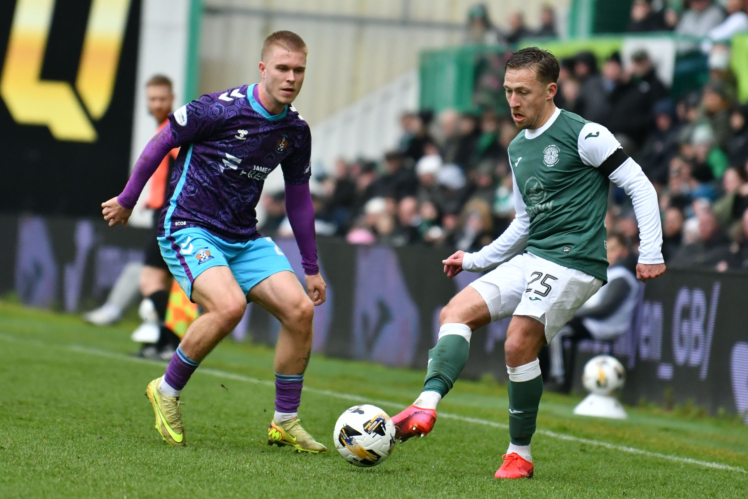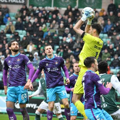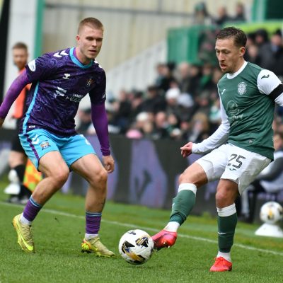 It was Killie who unsurprisingly saw most of the ball as they pushed hard to find a way back level. Joe Hugill saw an effort from the edge of the box sail high over the bar, while Kiltie forced Sallinger into another decent stop on 64 minutes after energetic pressing saw the visitors win the ball back in Hibs’ final third.