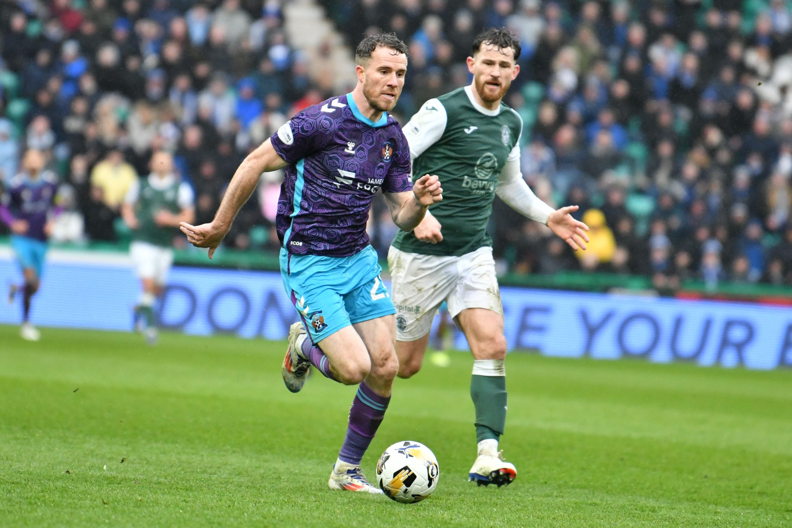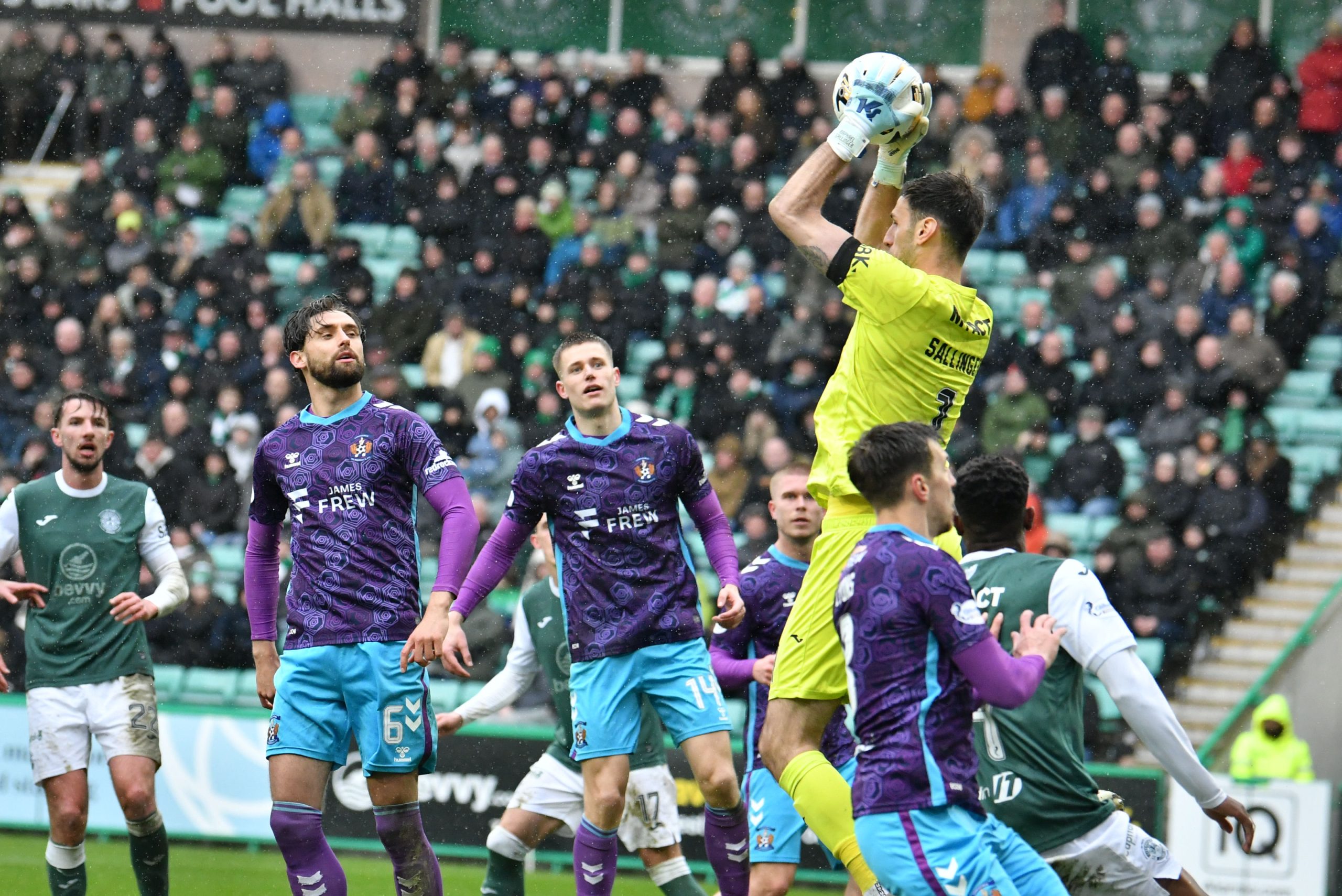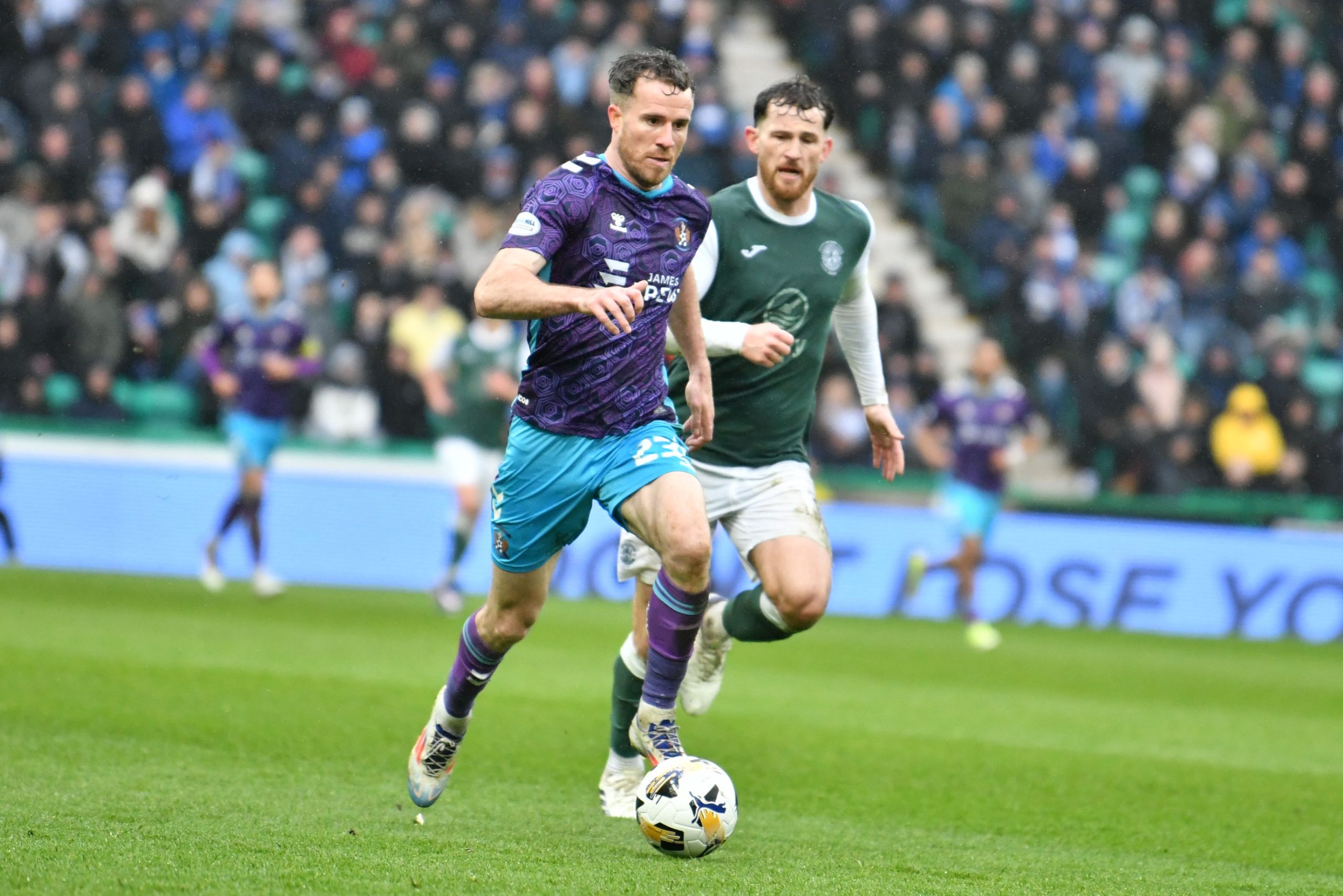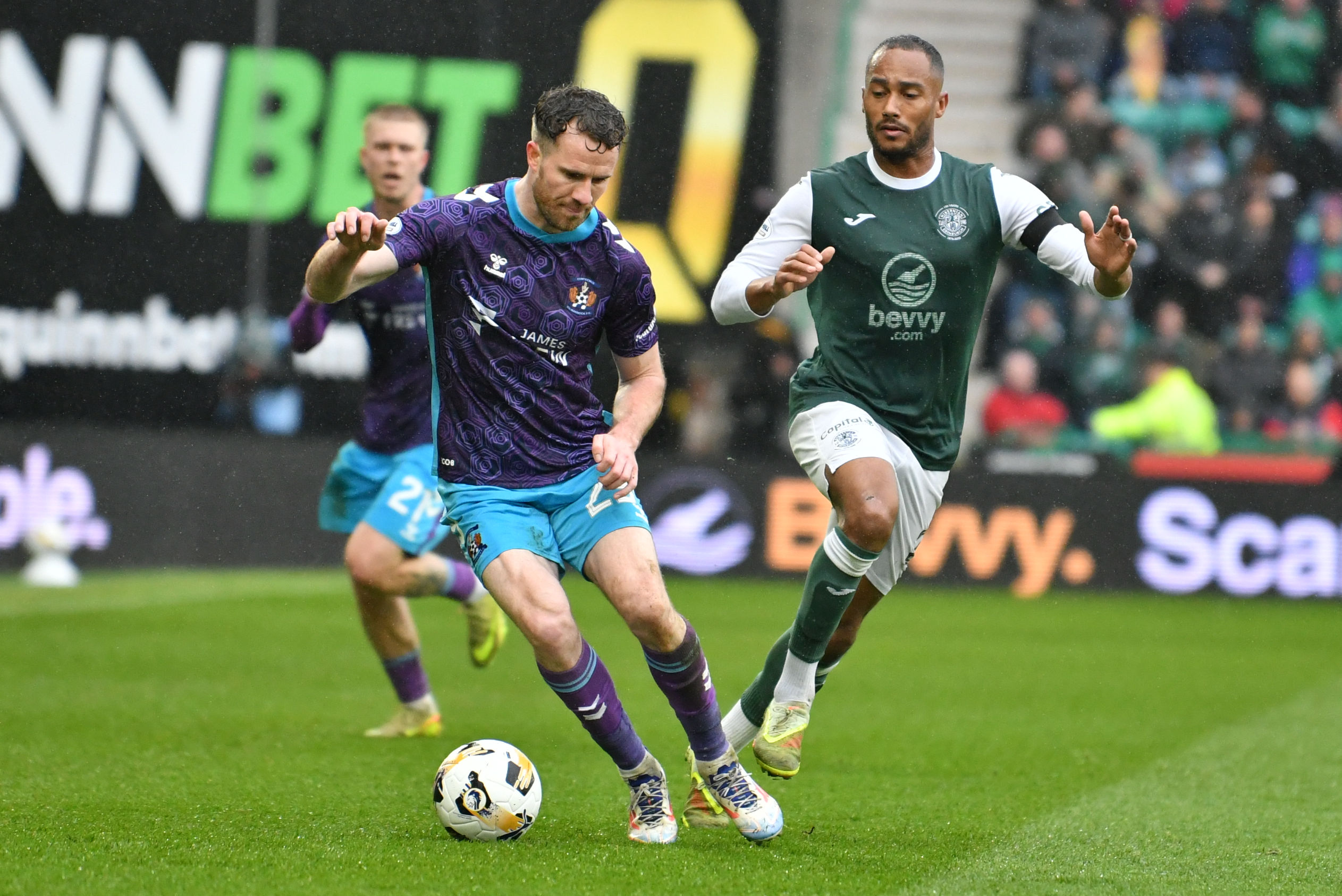 It was Killie who unsurprisingly saw most of the ball as they pushed hard to find a way back level. Joe Hugill saw an effort from the edge of the box sail high over the bar, while Kiltie forced Sallinger into another decent stop on 64 minutes after energetic pressing saw the visitors win the ball back in Hibs’ final third.