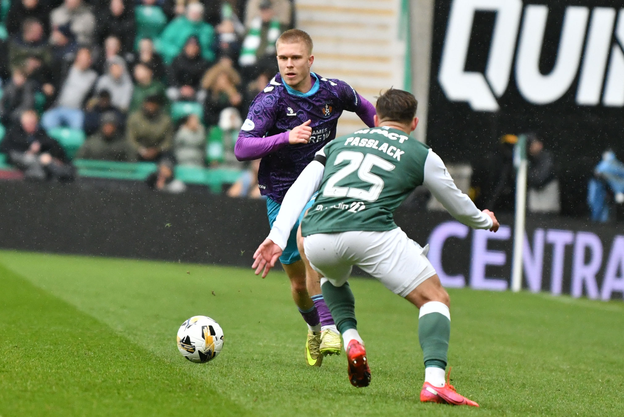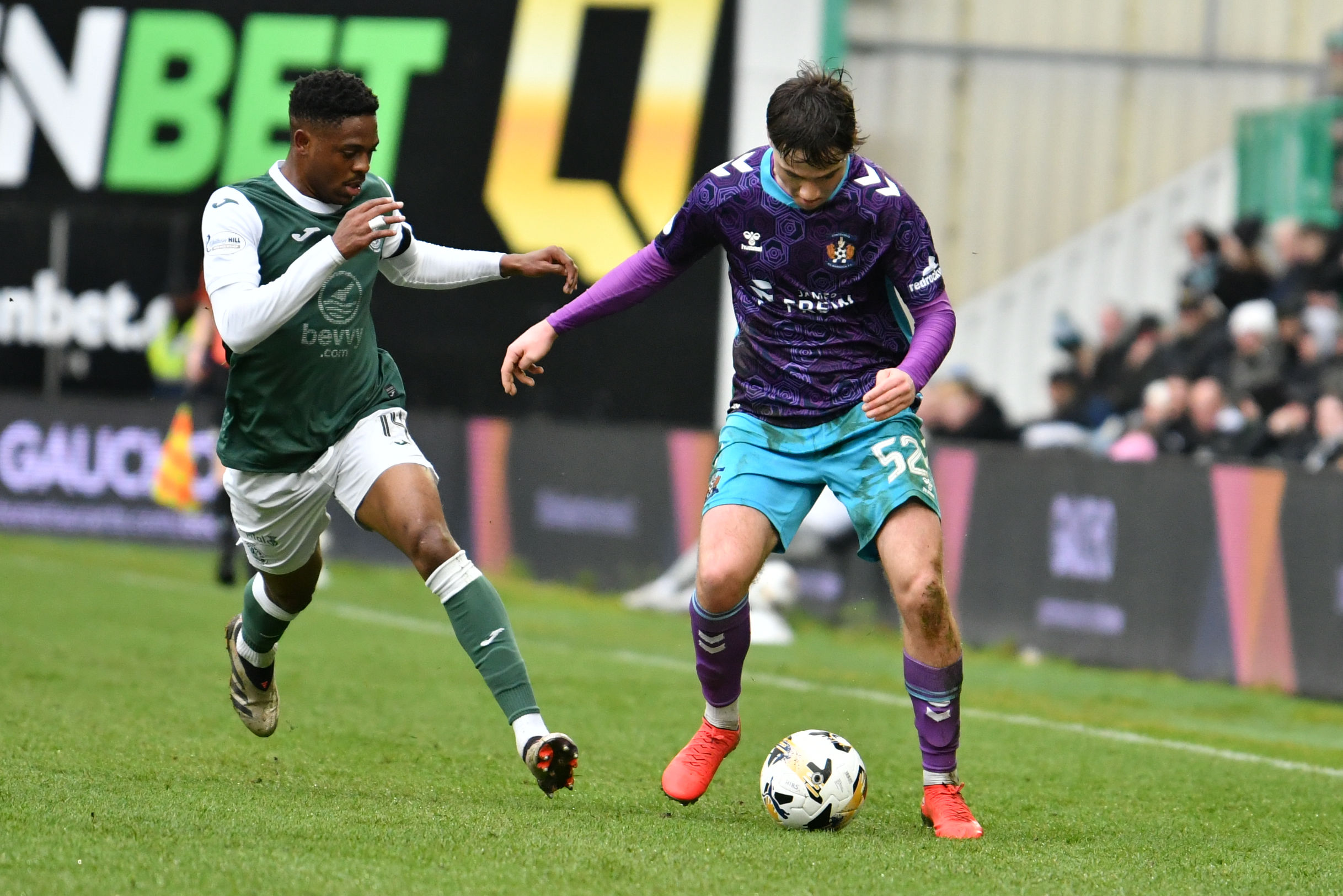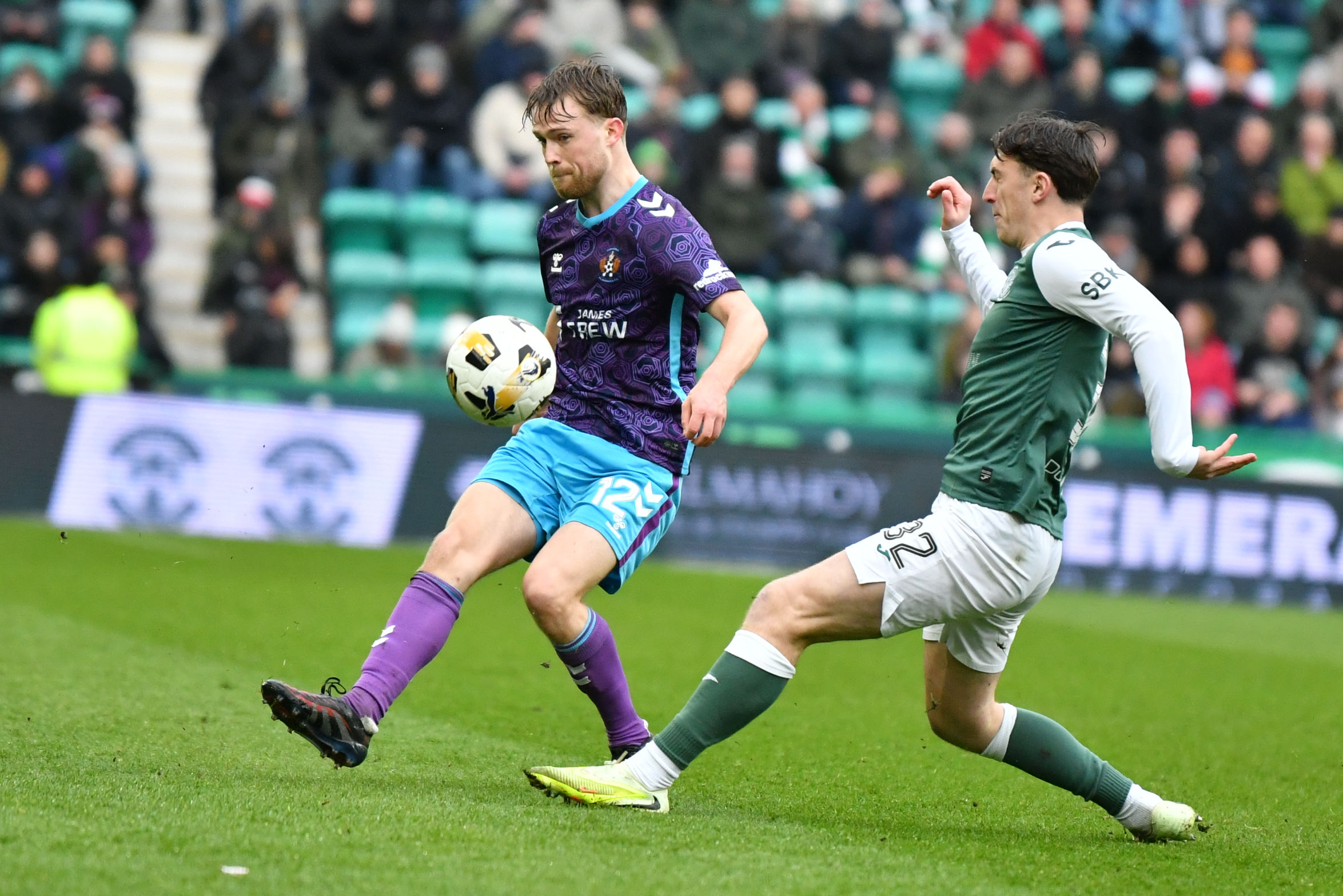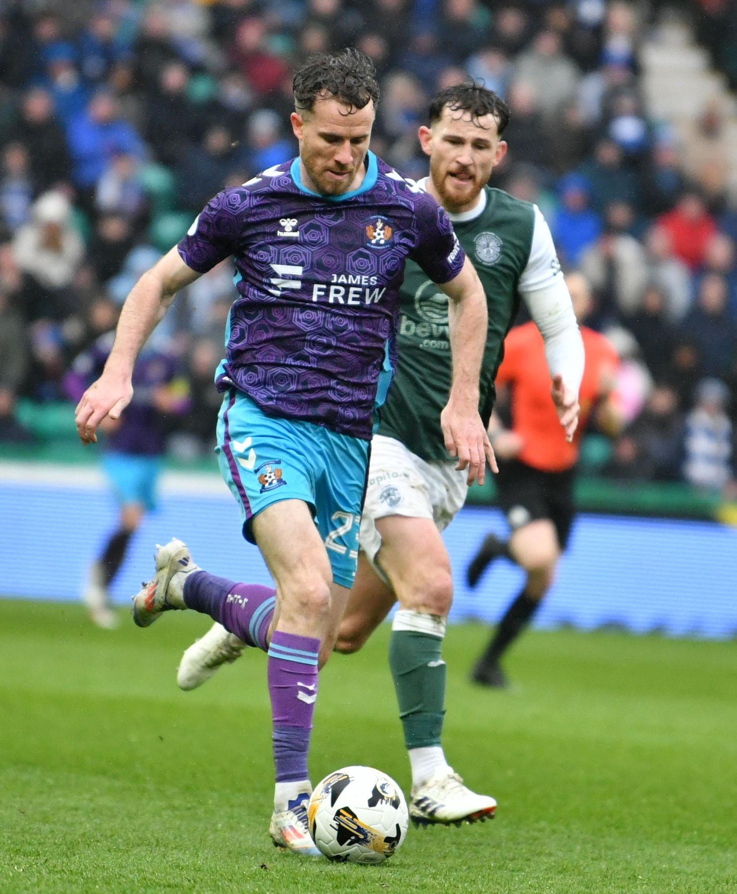 It was Killie who unsurprisingly saw most of the ball as they pushed hard to find a way back level. Joe Hugill saw an effort from the edge of the box sail high over the bar, while Kiltie forced Sallinger into another decent stop on 64 minutes after energetic pressing saw the visitors win the ball back in Hibs’ final third.