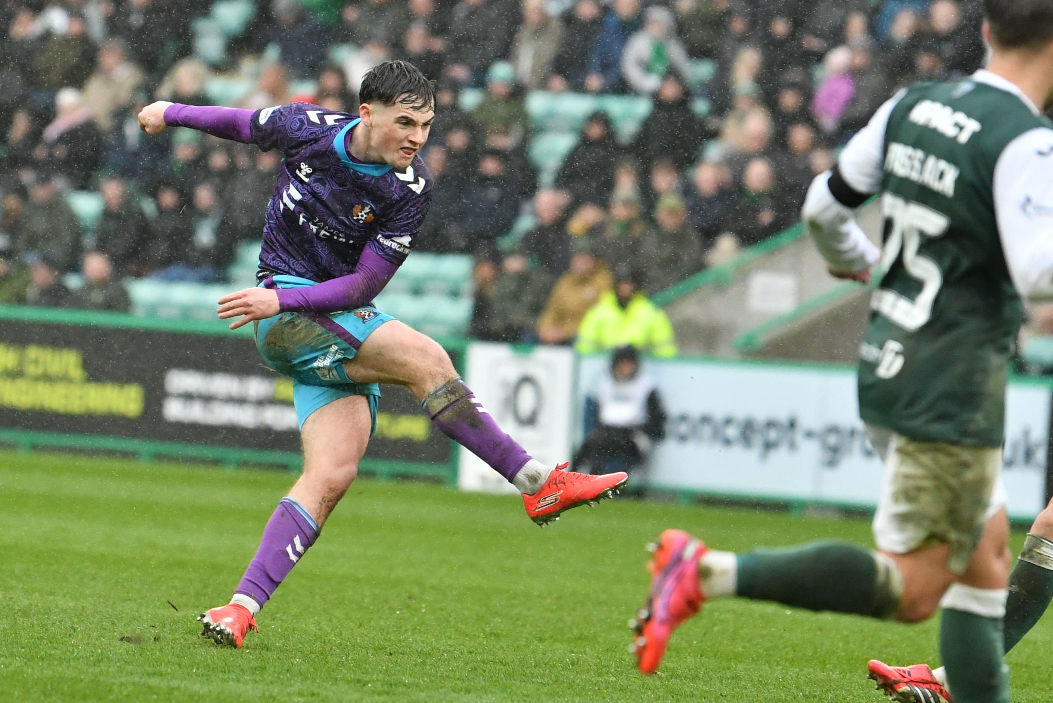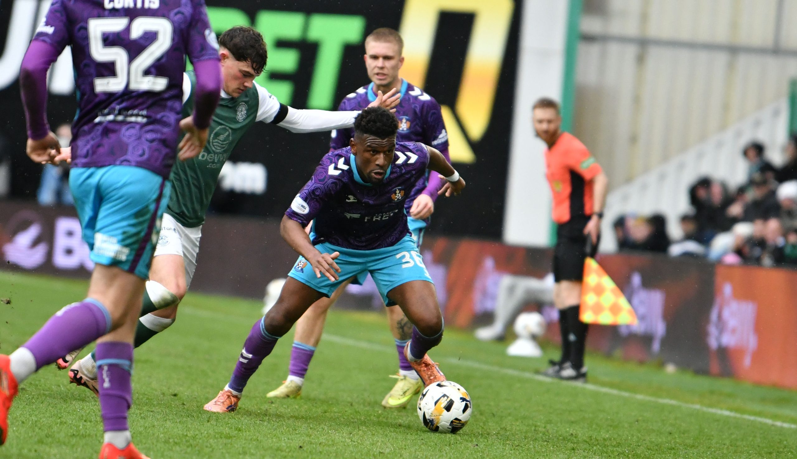 On 26 minutes, Findlay Curtis thought he’d pulled Killie back into the match with a composed first-time finish after Lyons fired the ball across the face of goal. However, a lengthy VAR check deemed the skipper to be in an offside position, and the strike was ruled out in what was an encouraging moment.