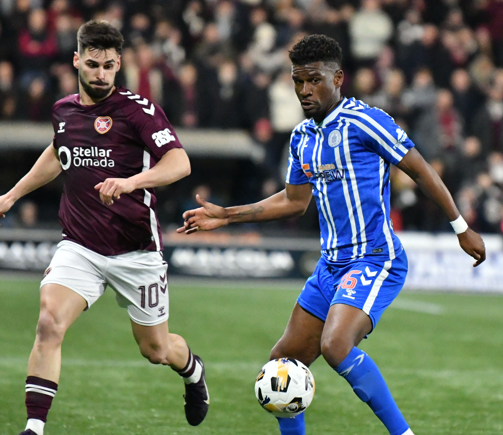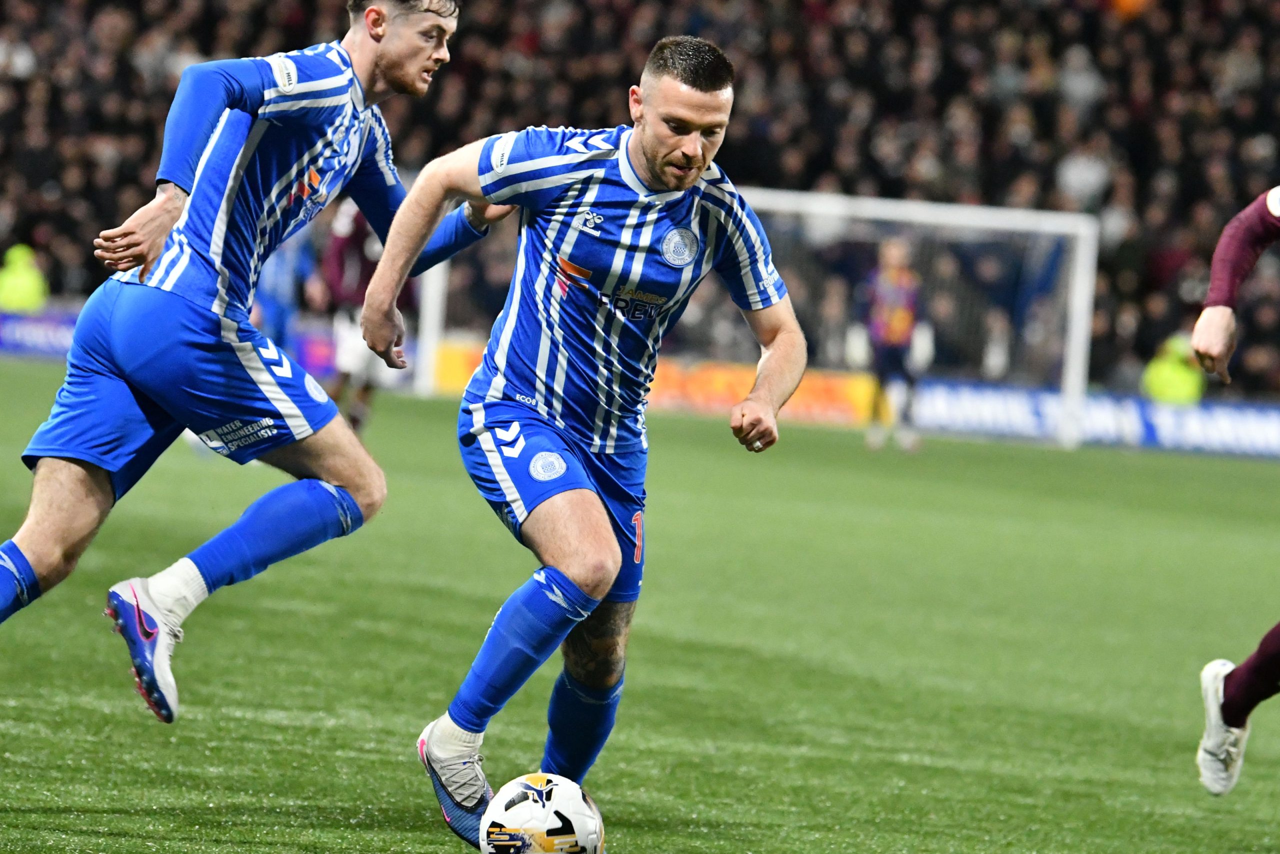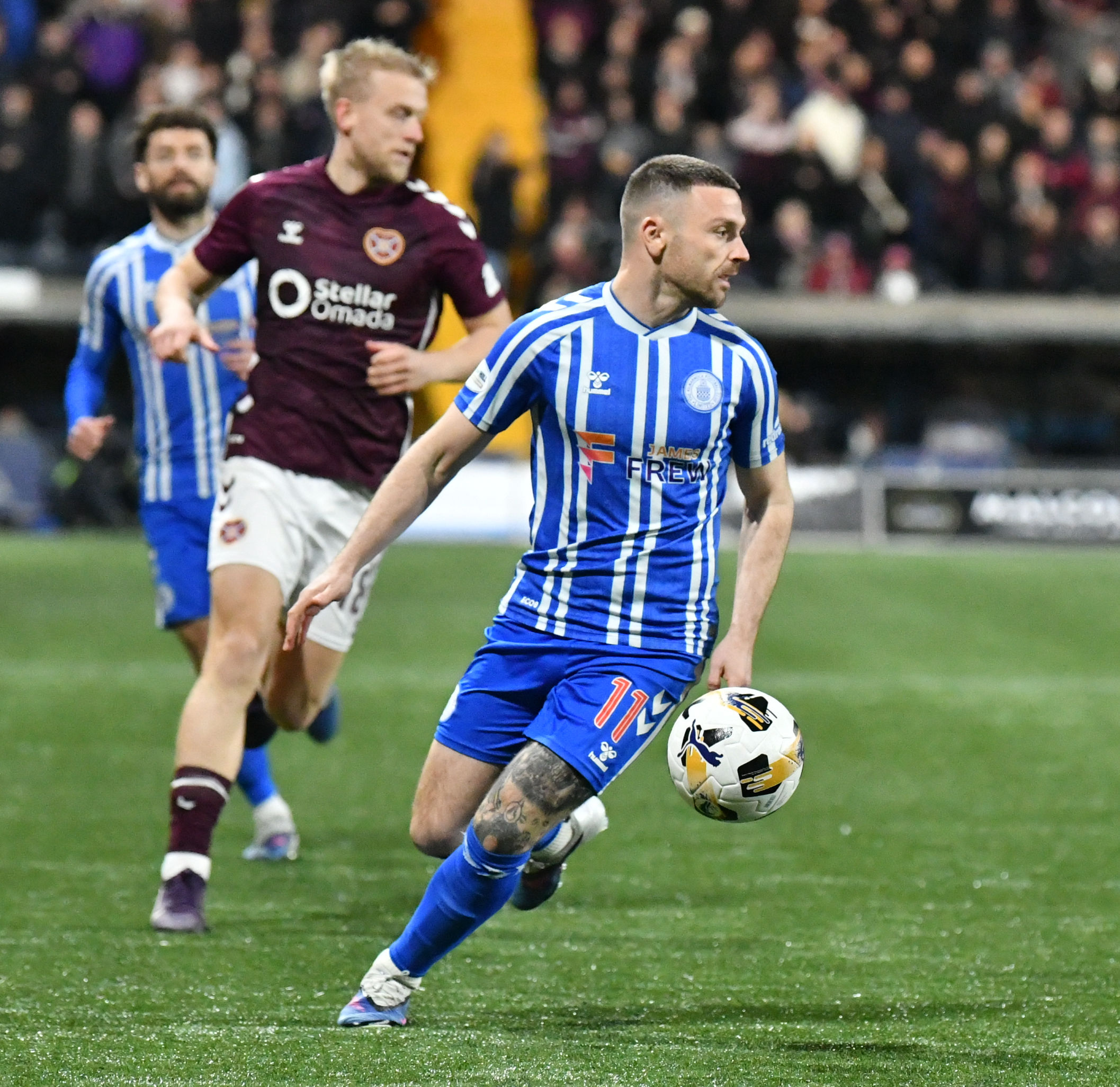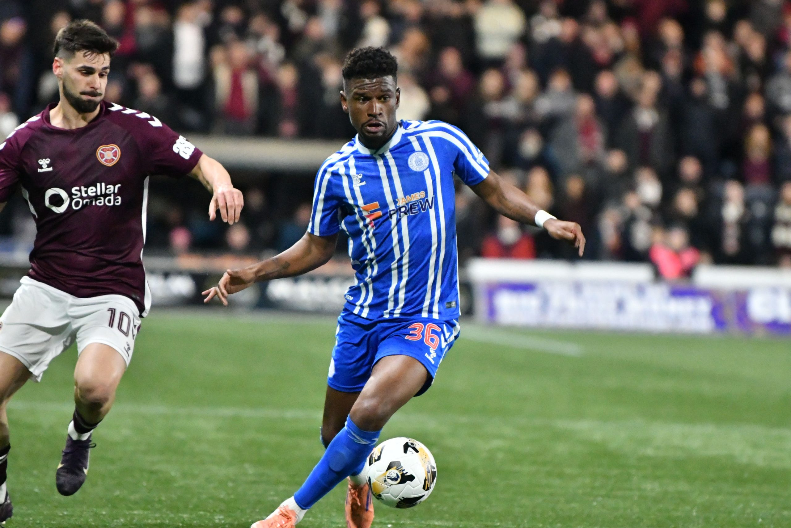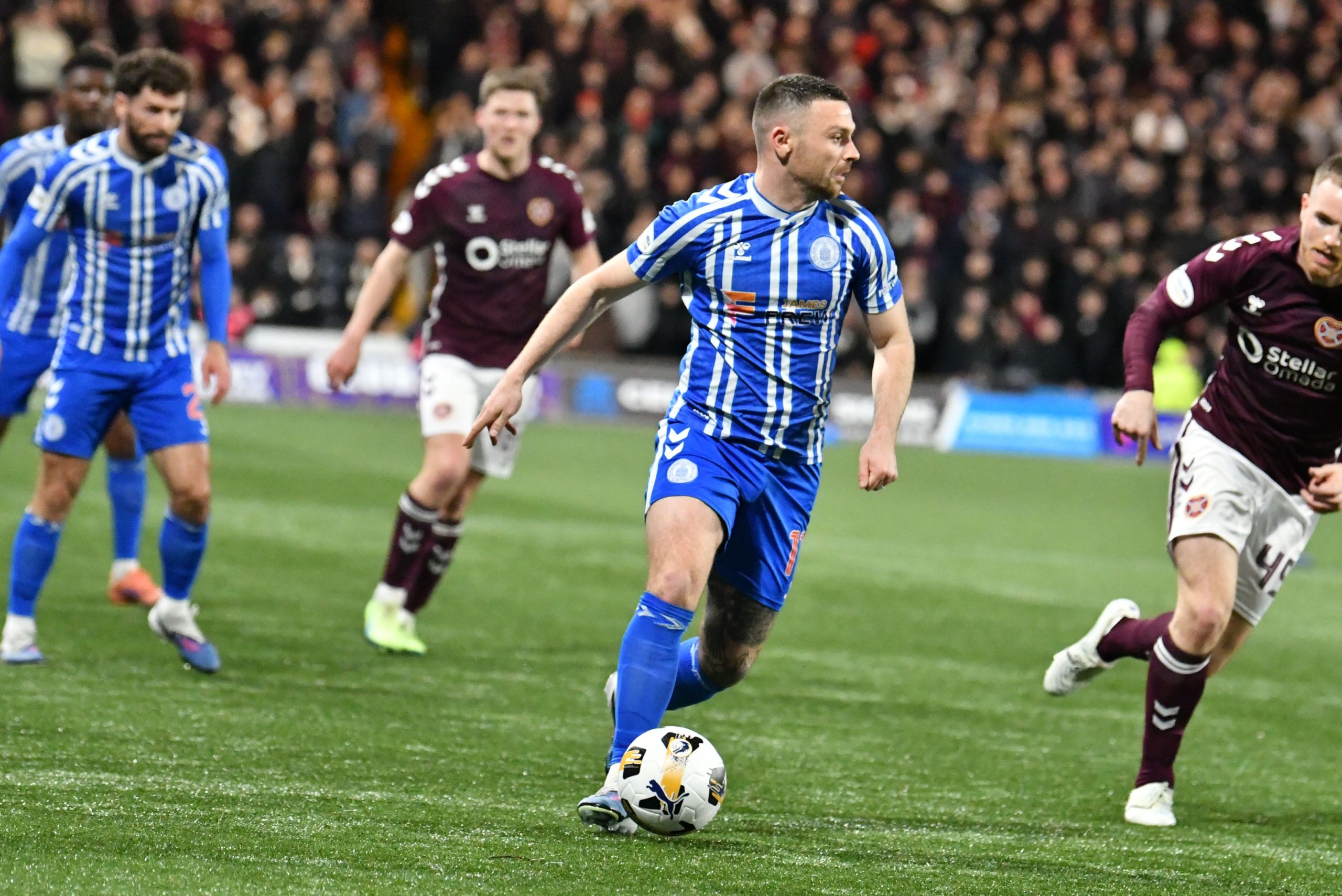 After the break, McCann’s side again started the better team. Good pressing by Hugill saw Killie win the ball high in Hearts’ half. It ended with a Kiltie effort going wide of the post, as the boys in blue and white showed their teeth from the off.